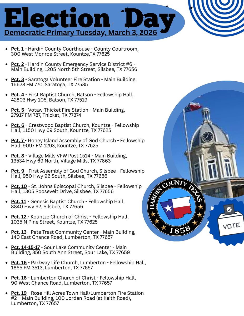On September 1, 2023, HB 2626 went into effect. Hardin County Elections Administration will post each campaign finance report, including Appointment of Campaign Treasurer forms filed with our office on or after September 1, 2023. They will be made available here.