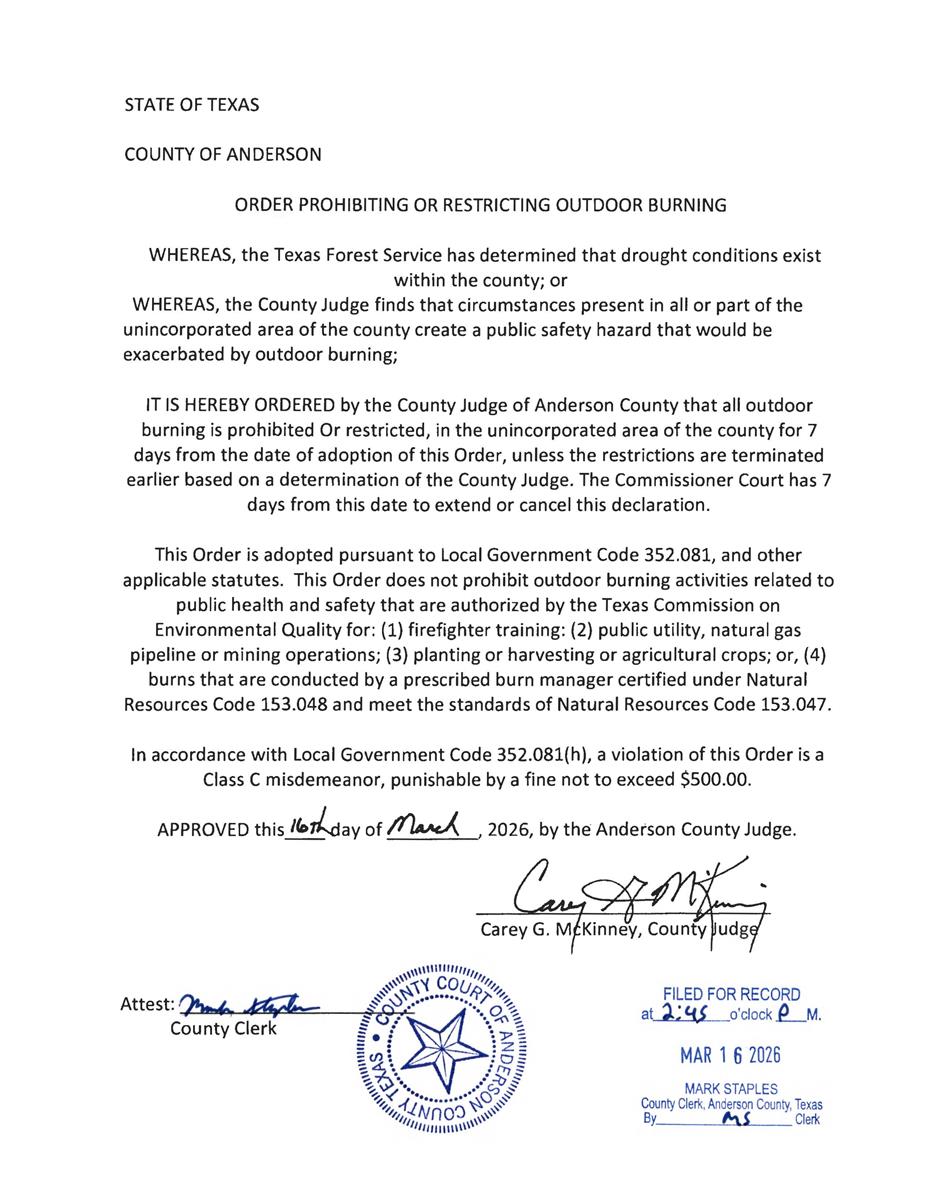 Our mission at Anderson County Emergency Management office is to prepare, safeguard and protect the residents and property of Anderson County from the effects of disasters through effective planning, preparation, response, and recovery activities. To accomplish this mission, Anderson County Emergency Management Team continually coordinates with Federal, State, and Local offices that provide emergency services to develop maintain and coordinate a comprehensive emergency management plan.