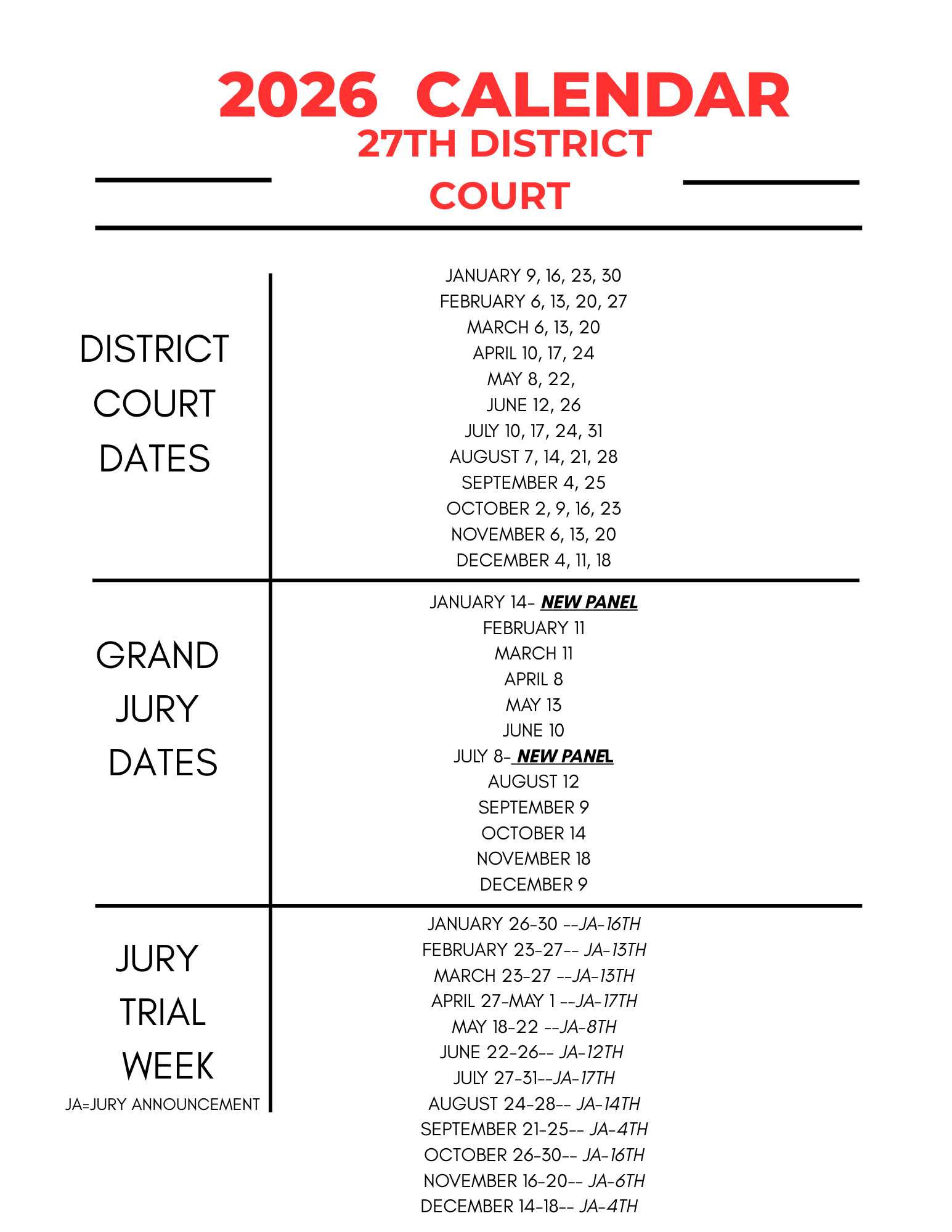 ** If you are needing hearing dates, jury trial dates, or any information regarding a hearing, please email the Court Coordinator at deeann.crawford@co.lampasas.tx.us. **