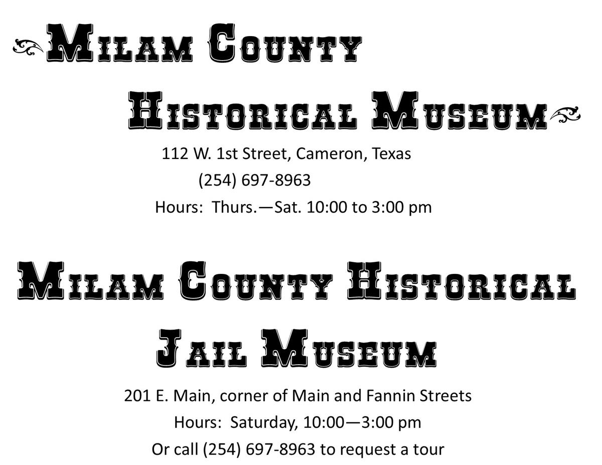 Texas History Programs, Local Artisans Displays, and Live Handcraft Demonstrations will all be featured at the Milam County Historical Museum during Steak, Stein, and Wine Festival